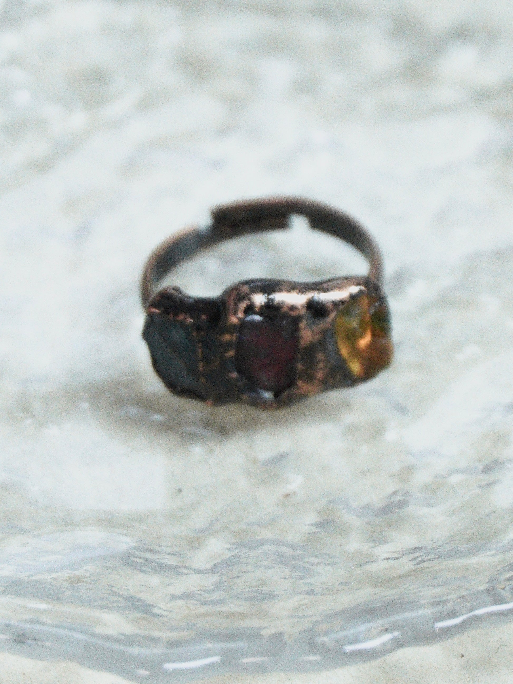Garnet Aquamarine gemstone Citrine Ring